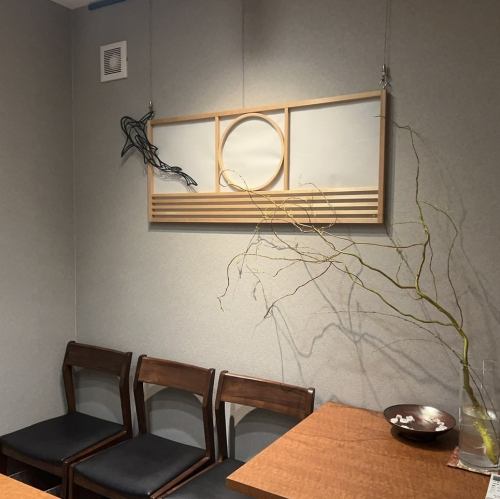 【ご接待にも利用できる個室席】最大8名様でご利用いただける個室は、ご宴会やご接待にぴったりです。当店のコンセプトはお客様にゆっくりお寛ぎいただき、季節の料理を気軽に楽しみ、リラックスしていただくことです◎